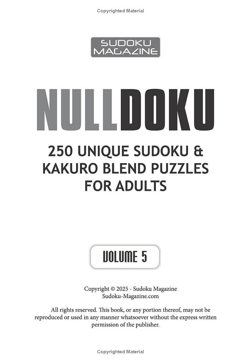 You are previewing: Nulldoku: 250 Unique Sudoku & Kakuro Blend Puzzles for Adults