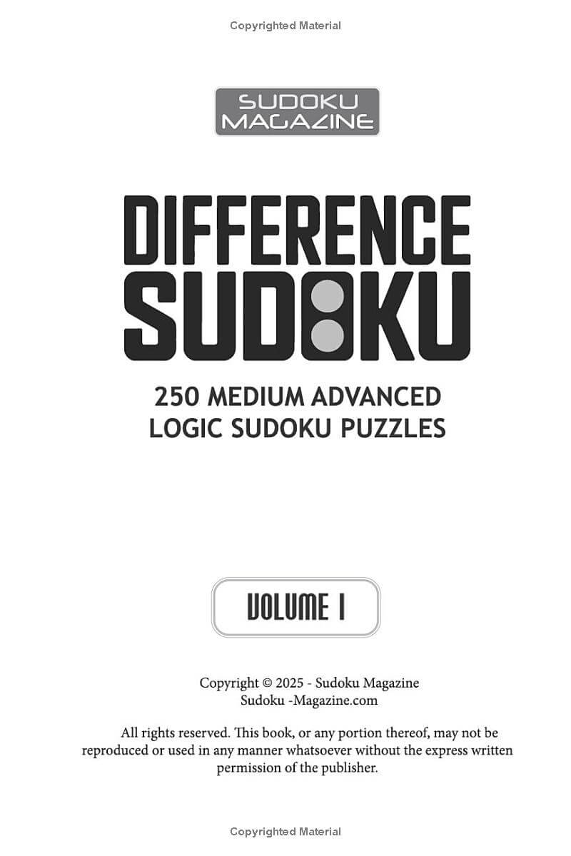 You are previewing: Difference Sudoku: 250 Medium Advanced Logic Sudoku Puzzles