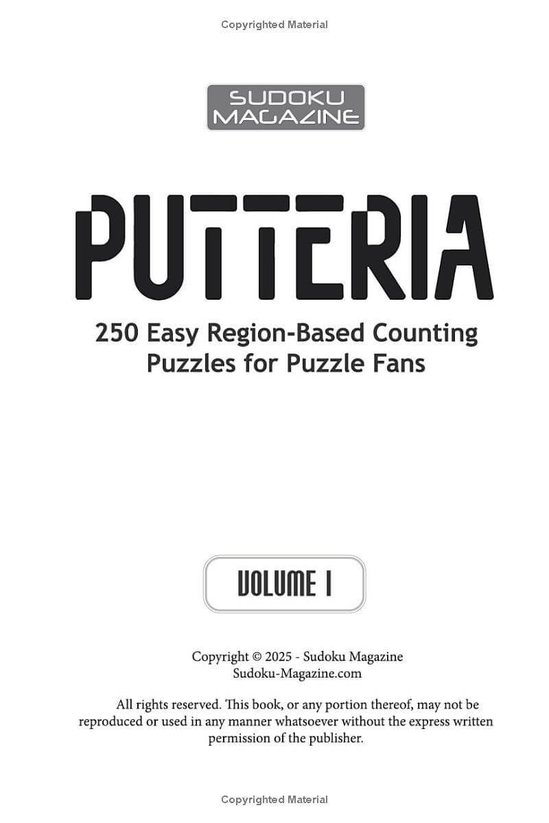 You are previewing: Putteria: 250 Easy Region-Based Counting Puzzles for Puzzle Fans