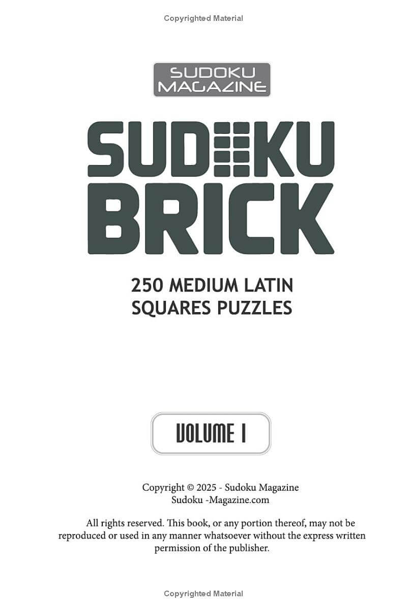 You are previewing: Sudoku Brick: 250 Medium Latin Squares Puzzles